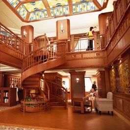 Die zweigeschossige, lichtdurchflutete Bibliothek umfasst 6.000 Bücher. Mit ihren warmen Holztönen, einer eleganten Wendeltreppe und der schmückenden Bleiglasdecke lädt sie zu entspannten Lesestunden im klassischen Ambiente ein.