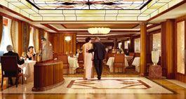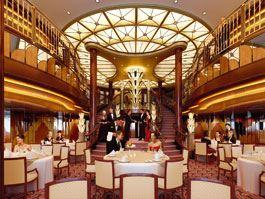 Die elegante Doppeltreppe im Zentrum bietet die perfekte Bühne für Ihren Gala-Auftritt. Lassen Sie die klassische Cunard Atmosphäre auf sich wirken. Als Gast der Kategorien D, C und A speisen Sie im geschmackvollen Art déco-Ambiente wahlweise in der frühen Sitzung ab 18.00 Uhr oder in der späten Sitzung ab 20.30 Uhr.